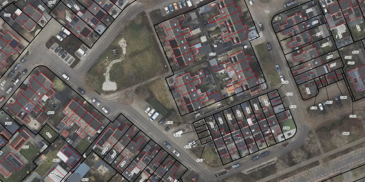 Het perceel waarop 't Veld 38 staat heeft een oppervlakte van 2645 m². Dit is een zeer groot perceel. De perceeloppervlakte wordt geregistreerd door het Kadaster. Gedetailleerde informatie over de maten van dit perceel kunt u vinden in het rapport Kadastrale kaart met maatvoering van 't Veld 38.