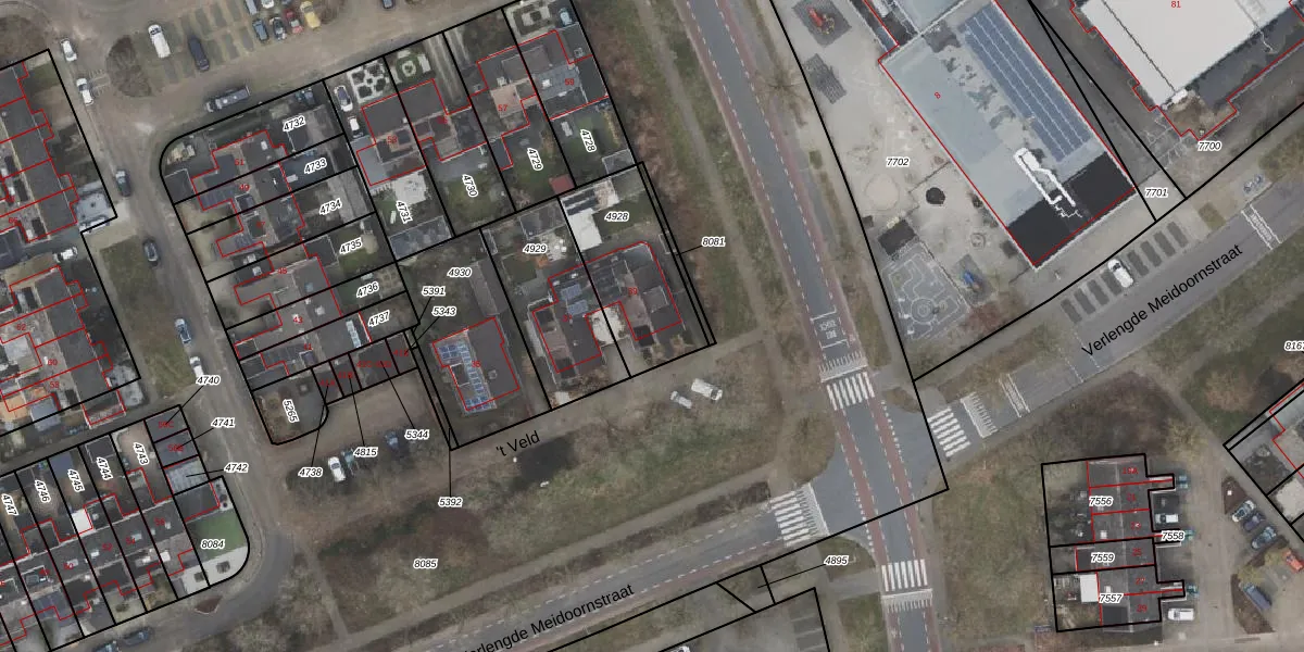 Het perceel waarop 't Veld 39 staat heeft een oppervlakte van 391 m². Dit is een groot perceel. De perceeloppervlakte wordt geregistreerd door het Kadaster. Gedetailleerde informatie over de maten van dit perceel kunt u vinden in het rapport Kadastrale kaart met maatvoering van 't Veld 39.