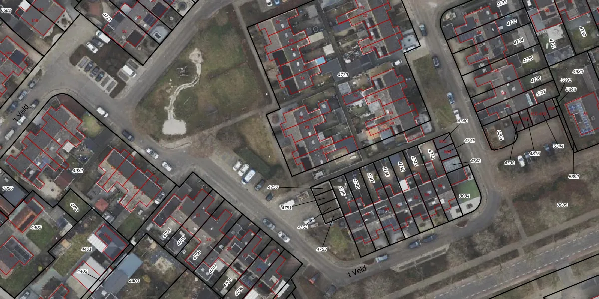 Het perceel waarop 't Veld 40 staat heeft een oppervlakte van 2645 m². Dit is een zeer groot perceel. De perceeloppervlakte wordt geregistreerd door het Kadaster. Gedetailleerde informatie over de maten van dit perceel kunt u vinden in het rapport Kadastrale kaart met maatvoering van 't Veld 40.