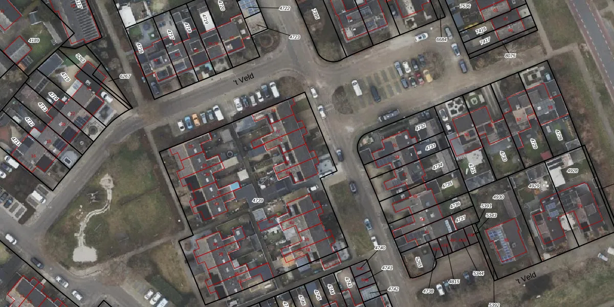 Het perceel waarop 't Veld 68 staat heeft een oppervlakte van 2645 m². Dit is een zeer groot perceel. De perceeloppervlakte wordt geregistreerd door het Kadaster. Gedetailleerde informatie over de maten van dit perceel kunt u vinden in het rapport Kadastrale kaart met maatvoering van 't Veld 68.