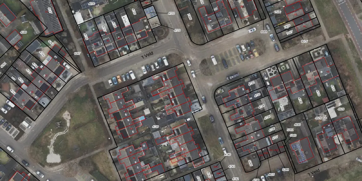 Het perceel waarop 't Veld 70 staat heeft een oppervlakte van 2645 m². Dit is een zeer groot perceel. De perceeloppervlakte wordt geregistreerd door het Kadaster. Gedetailleerde informatie over de maten van dit perceel kunt u vinden in het rapport Kadastrale kaart met maatvoering van 't Veld 70.