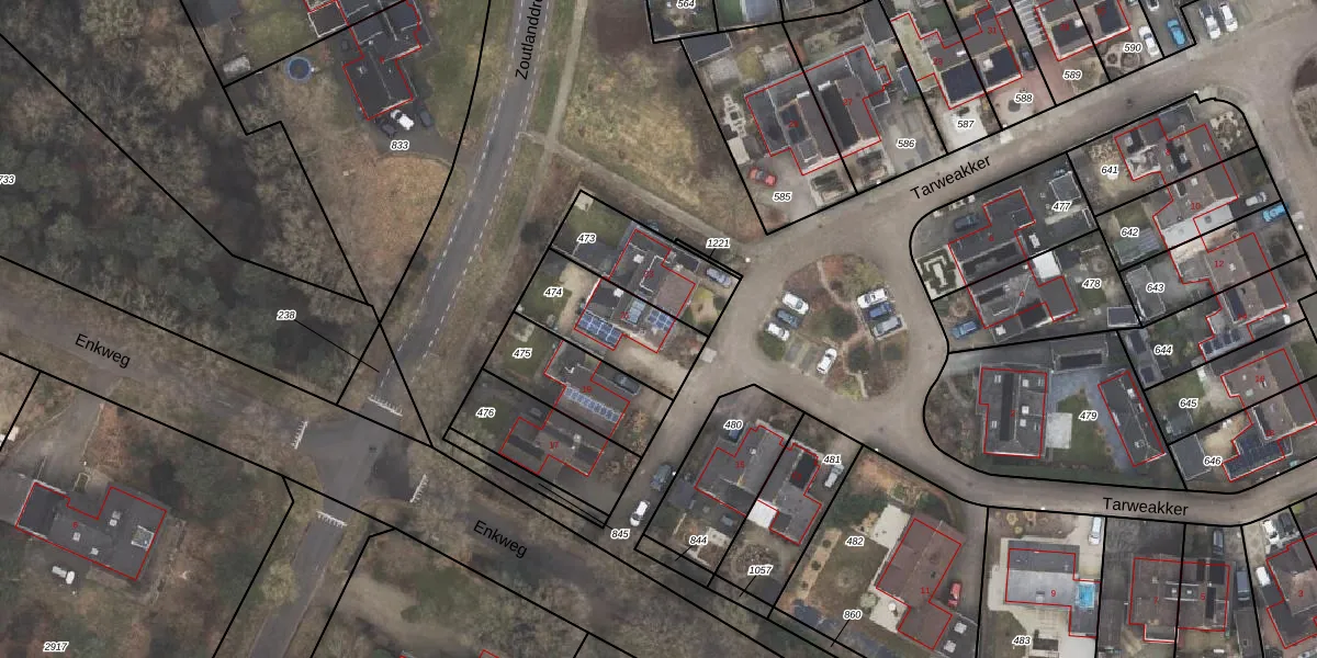 Gebruik de zoekbalk of klik op een perceel voor informatie over de adressen binnen dit perceel.