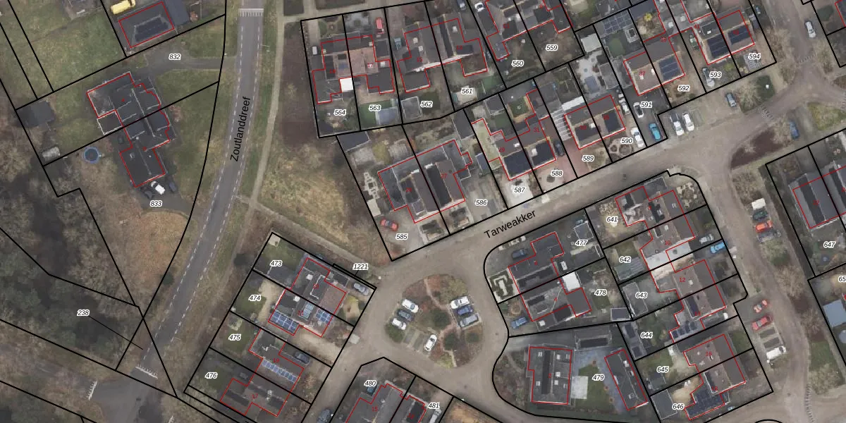 Tarweakker 25 is gelegen op kadastraal perceel ODB01R585. Deze kadastrale aanduiding is uniek en wordt gebruikt door het Kadaster om eigendomsrechten en andere zakelijke rechten vast te leggen. Het perceel maakt onderdeel uit van de kadastrale gemeente Oldebroek.