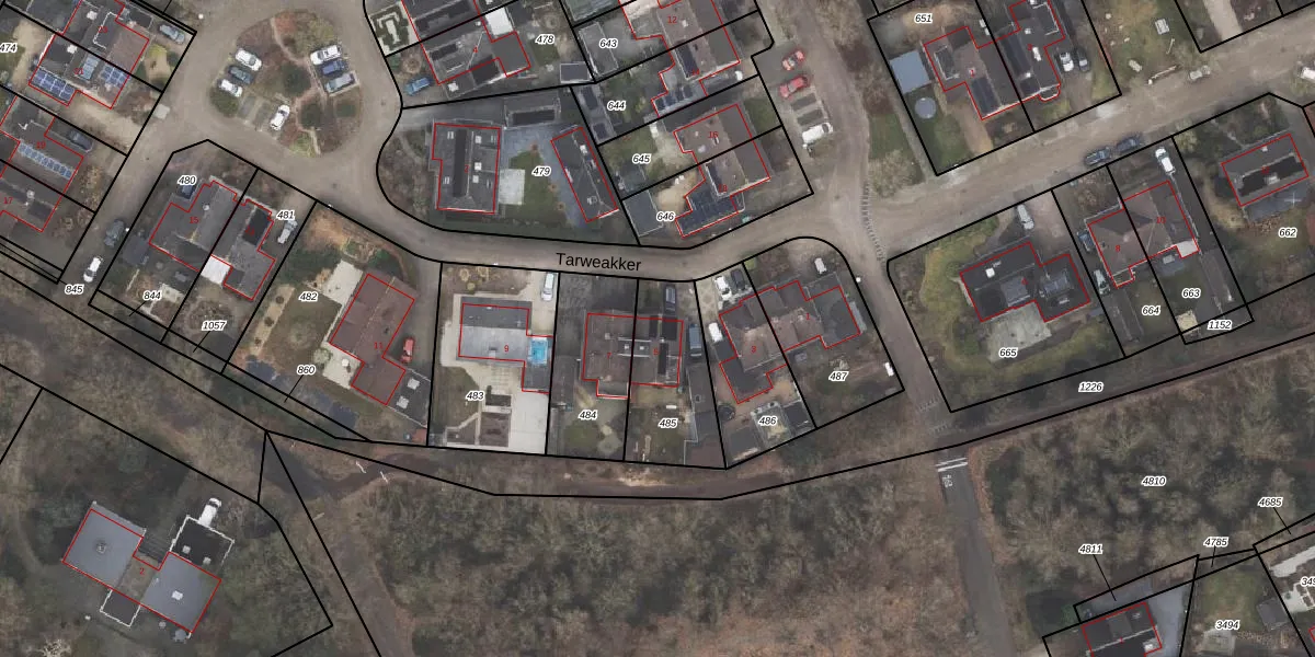 Tarweakker 5 is gelegen op kadastraal perceel ODB01R485. Deze kadastrale aanduiding is uniek en wordt gebruikt door het Kadaster om eigendomsrechten en andere zakelijke rechten vast te leggen. Het perceel maakt onderdeel uit van de kadastrale gemeente Oldebroek.