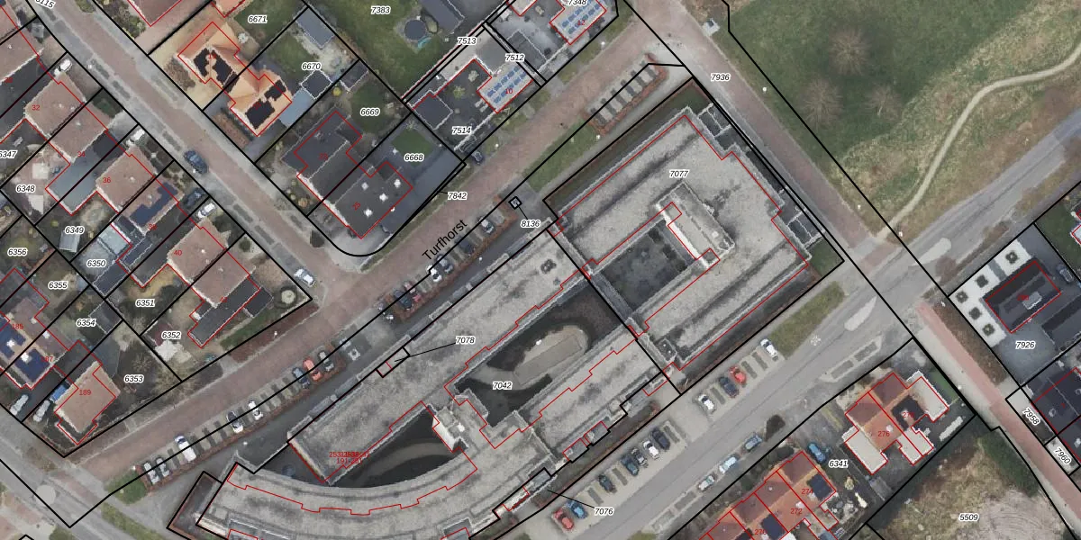 Het perceel waarop Turfhorst 33 staat heeft een oppervlakte van 2562 m². Dit is een zeer groot perceel. De perceeloppervlakte wordt geregistreerd door het Kadaster. Gedetailleerde informatie over de maten van dit perceel kunt u vinden in het rapport Kadastrale kaart met maatvoering van Turfhorst 33.