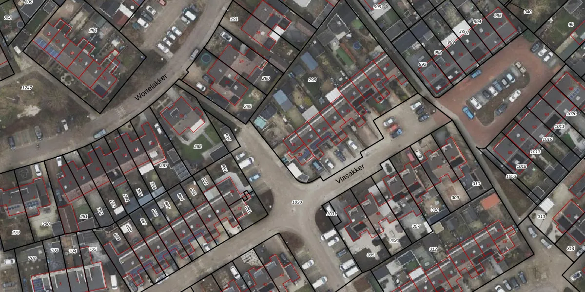 Het perceel waarop Vlasakker 33 staat heeft een oppervlakte van 1900 m². Dit is een zeer groot perceel. De perceeloppervlakte wordt geregistreerd door het Kadaster. Gedetailleerde informatie over de maten van dit perceel kunt u vinden in het rapport Kadastrale kaart met maatvoering van Vlasakker 33.