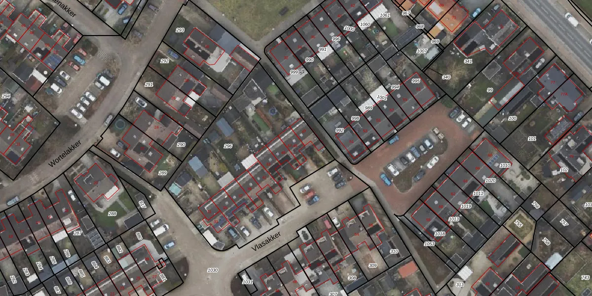 Het perceel waarop Vlasakker 47 staat heeft een oppervlakte van 1900 m². Dit is een zeer groot perceel. De perceeloppervlakte wordt geregistreerd door het Kadaster. Gedetailleerde informatie over de maten van dit perceel kunt u vinden in het rapport Kadastrale kaart met maatvoering van Vlasakker 47.