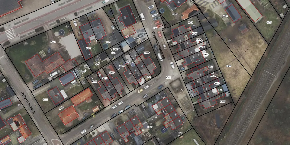 Gebruik de zoekbalk of klik op een perceel voor informatie over de adressen binnen dit perceel.
