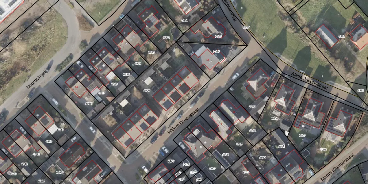 Het perceel waarop Willem Dreesstraat 14 staat heeft een oppervlakte van 1767 m². Dit is een zeer groot perceel. De perceeloppervlakte wordt geregistreerd door het Kadaster. Gedetailleerde informatie over de maten van dit perceel kunt u vinden in het rapport Kadastrale kaart met maatvoering van Willem Dreesstraat 14.