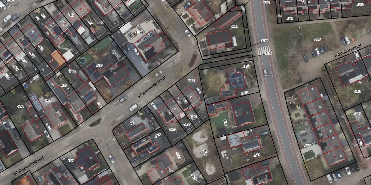 Gebruik de zoekbalk of klik op een perceel voor informatie over de adressen binnen dit perceel.