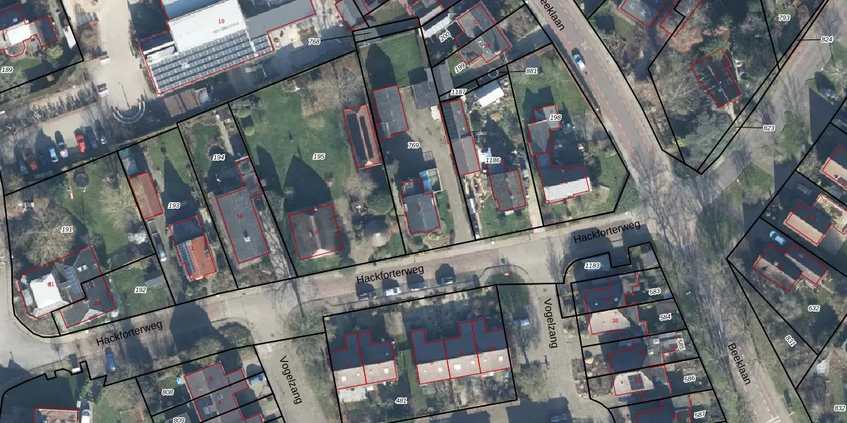 Het perceel waarop Hackforterweg 5 staat heeft een oppervlakte van 841 m². Dit is een groot perceel. De perceeloppervlakte wordt geregistreerd door het Kadaster. Gedetailleerde informatie over de maten van dit perceel kunt u vinden in het rapport Kadastrale kaart met maatvoering van Hackforterweg 5.