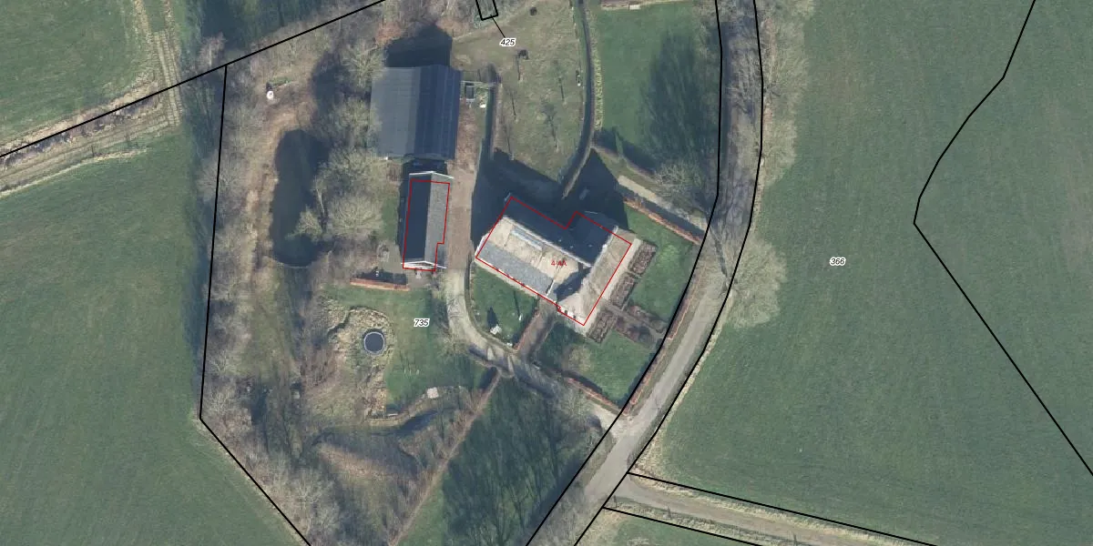 Het adres is gelegen op perceel 735 in de sectie S en de kadastrale gemeente Vorden. De kadastrale aanduiding is aldus VDN02-S-735. De oppervlakte van het perceel is 8918 m². Dat is groter dan gemiddeld in Vorden, waar de gemiddelde perceeloppervlakte op 8276,09 m² ligt. Het grootste perceel in de kadastrale gemeente is 70,5 ha. Het kleinste perceel heeft een oppervlakte van 0 m². Er zijn 2 adressen aanwezig op het perceel. In de Basisregistratie Kadaster (BRK) werden de grenzen van het perceel geregistreerd op 07-01-2000.