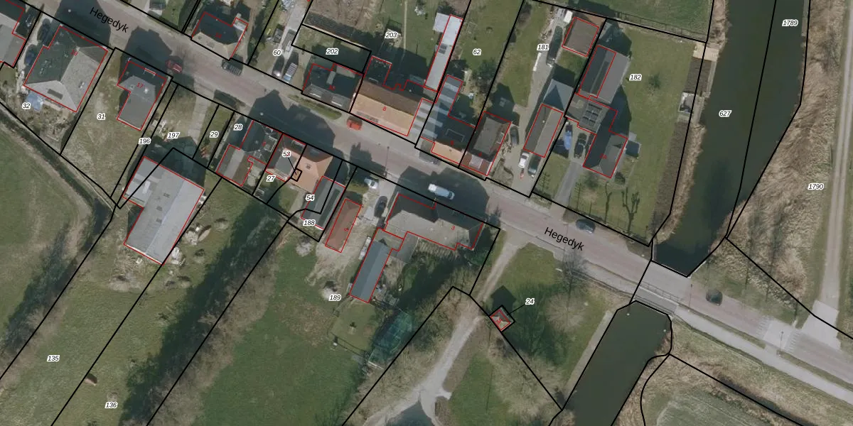 Het perceel waarop Hegedyk 3 staat heeft een oppervlakte van 9580 m². Dit is een zeer groot perceel. De perceeloppervlakte wordt geregistreerd door het Kadaster. Gedetailleerde informatie over de maten van dit perceel kunt u vinden in het rapport Kadastrale kaart met maatvoering van Hegedyk 3.