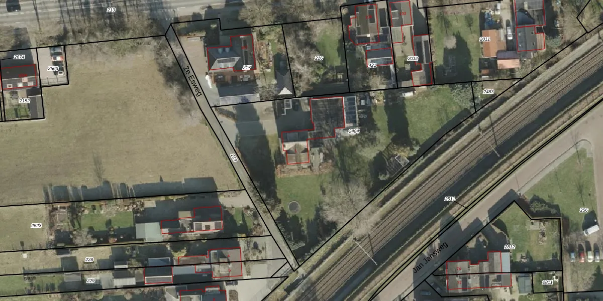 Het perceel waarop 2e Esweg 1 staat heeft een oppervlakte van 2702 m². Dit is een zeer groot perceel. De perceeloppervlakte wordt geregistreerd door het Kadaster. Gedetailleerde informatie over de maten van dit perceel kunt u vinden in het rapport Kadastrale kaart met maatvoering van 2e Esweg 1.