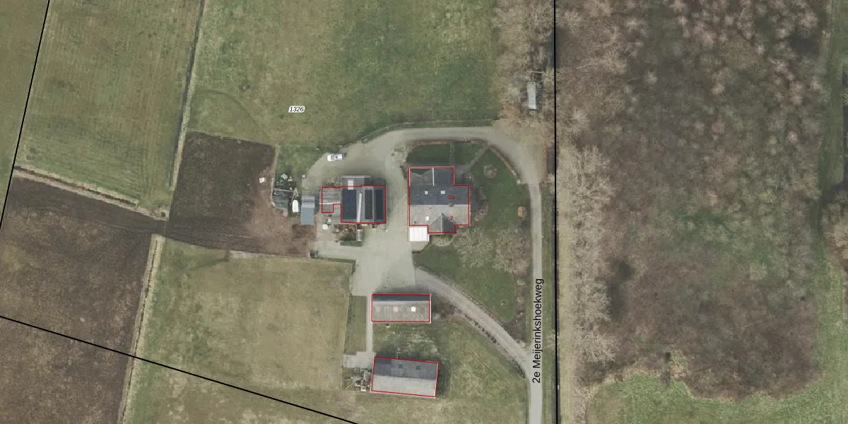 2e Meijerinkshoekweg 2 is gelegen op kadastraal perceel WDN02M1326. Deze kadastrale aanduiding is uniek en wordt gebruikt door het Kadaster om eigendomsrechten en andere zakelijke rechten vast te leggen. Het perceel maakt onderdeel uit van de kadastrale gemeente Wierden.