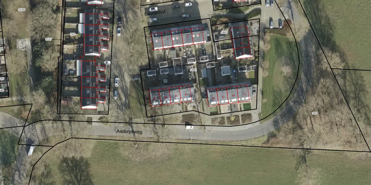 Het perceel waarop Aadorpsweg 63 staat heeft een oppervlakte van 2749 m². Dit is een zeer groot perceel. De perceeloppervlakte wordt geregistreerd door het Kadaster. Gedetailleerde informatie over de maten van dit perceel kunt u vinden in het rapport Kadastrale kaart met maatvoering van Aadorpsweg 63.