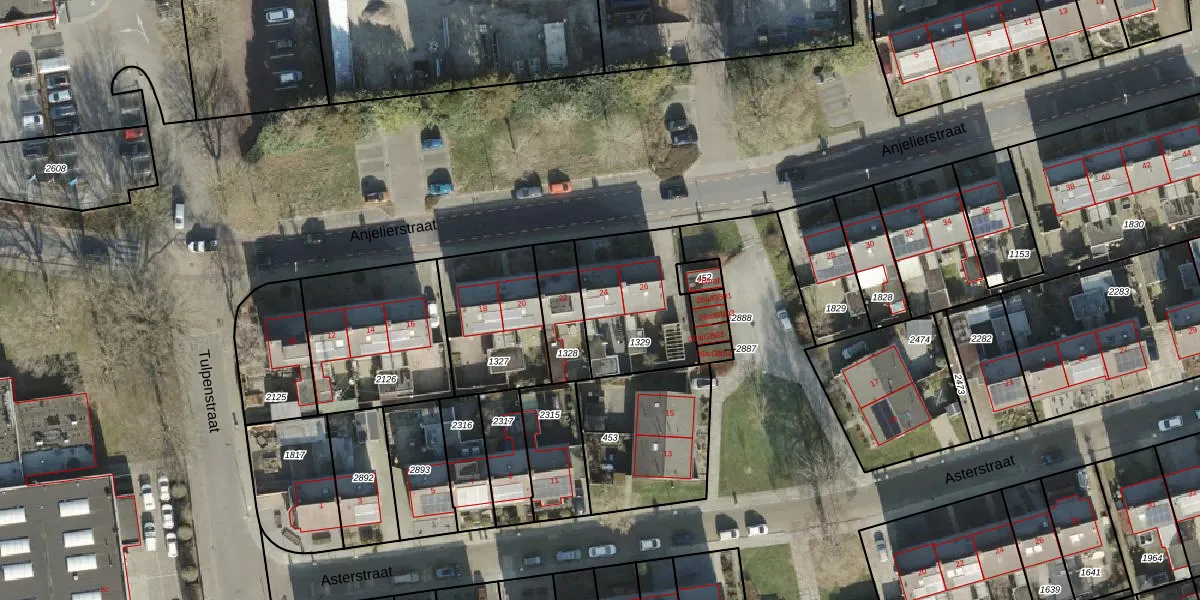 Het perceel waarop Anjelierstraat 24 staat heeft een oppervlakte van 408 m². Dit is een groot perceel. De perceeloppervlakte wordt geregistreerd door het Kadaster. Gedetailleerde informatie over de maten van dit perceel kunt u vinden in het rapport Kadastrale kaart met maatvoering van Anjelierstraat 24.
