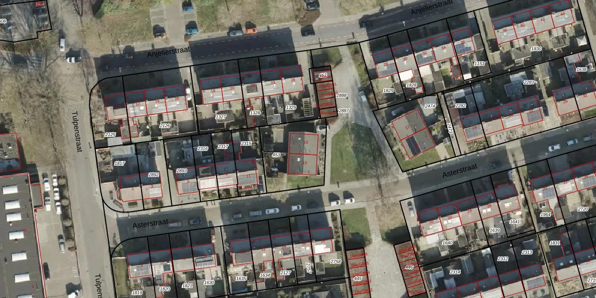 Het perceel waarop Asterstraat 15 staat heeft een oppervlakte van 475 m². Dit is een groot perceel. De perceeloppervlakte wordt geregistreerd door het Kadaster. Gedetailleerde informatie over de maten van dit perceel kunt u vinden in het rapport Kadastrale kaart met maatvoering van Asterstraat 15.