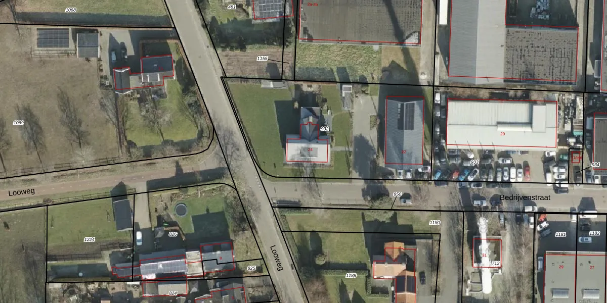 Het perceel waarop Bedrijvenstraat 24 staat heeft een oppervlakte van 2000 m². Dit is een zeer groot perceel. De perceeloppervlakte wordt geregistreerd door het Kadaster. Gedetailleerde informatie over de maten van dit perceel kunt u vinden in het rapport Kadastrale kaart met maatvoering van Bedrijvenstraat 24.