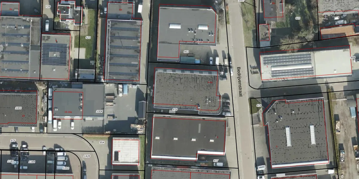 Het perceel waarop Bedrijvenstraat 4-a staat heeft een oppervlakte van 1325 m². Dit is een zeer groot perceel. De perceeloppervlakte wordt geregistreerd door het Kadaster. Gedetailleerde informatie over de maten van dit perceel kunt u vinden in het rapport Kadastrale kaart met maatvoering van Bedrijvenstraat 4-a.