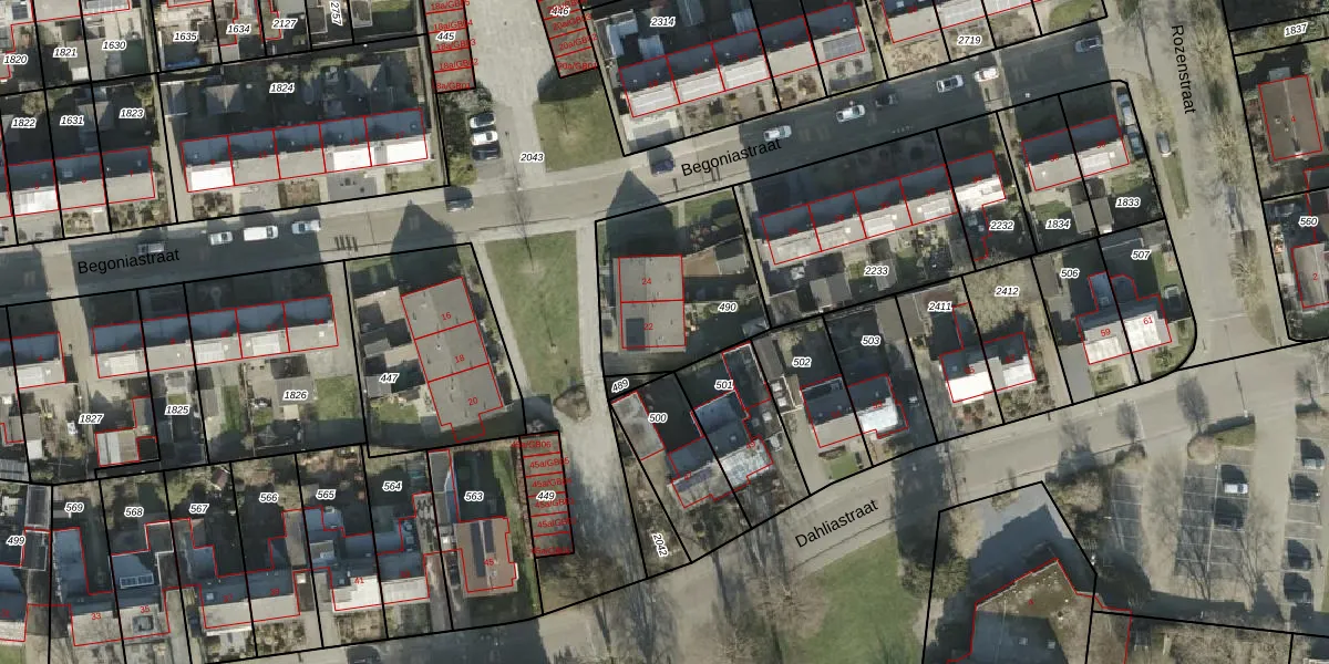 Het perceel waarop Begoniastraat 22 staat heeft een oppervlakte van 566 m². Dit is een groot perceel. De perceeloppervlakte wordt geregistreerd door het Kadaster. Gedetailleerde informatie over de maten van dit perceel kunt u vinden in het rapport Kadastrale kaart met maatvoering van Begoniastraat 22.