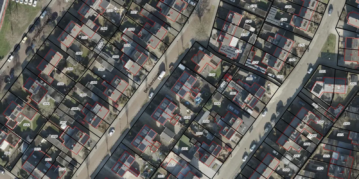 Het perceel waarop Beukenlaan 21 staat heeft een oppervlakte van 1394 m². Dit is een zeer groot perceel. De perceeloppervlakte wordt geregistreerd door het Kadaster. Gedetailleerde informatie over de maten van dit perceel kunt u vinden in het rapport Kadastrale kaart met maatvoering van Beukenlaan 21.