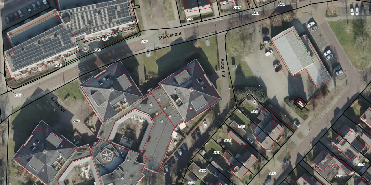 Het perceel waarop Botterhof 87 staat heeft een oppervlakte van 1,0 ha. Dit is een zeer groot perceel. De perceeloppervlakte wordt geregistreerd door het Kadaster. Gedetailleerde informatie over de maten van dit perceel kunt u vinden in het rapport Kadastrale kaart met maatvoering van Botterhof 87.