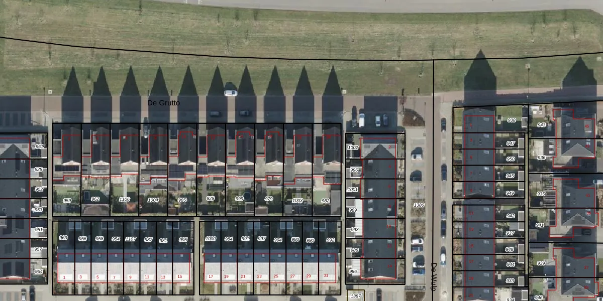 Het perceel waarop De Grutto 18 staat heeft een oppervlakte van 297 m². Dit is een middelgroot perceel. De perceeloppervlakte wordt geregistreerd door het Kadaster. Gedetailleerde informatie over de maten van dit perceel kunt u vinden in het rapport Kadastrale kaart met maatvoering van De Grutto 18.