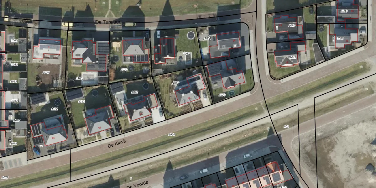 Het perceel waarop De Kievit 29 staat heeft een oppervlakte van 617 m². Dit is een groot perceel. De perceeloppervlakte wordt geregistreerd door het Kadaster. Gedetailleerde informatie over de maten van dit perceel kunt u vinden in het rapport Kadastrale kaart met maatvoering van De Kievit 29.