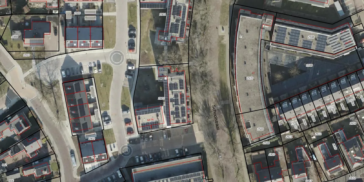 Het adres ligt op het perceel WDN02-K-2903, dat zich in de kadastrale gemeente Wierden bevindt. Het perceel is kleiner dan gemiddeld in Wierden. Het perceel is 1065 m² groot, terwijl het gemiddelde ligt op 5334,62 m². Het grootste perceel in de kadastrale gemeente is 1,19 km². Het kleinste perceel heeft een oppervlakte van 0 m². Op het perceel liggen in totaal 16 adressen. De huidige grenzen van het perceel zijn digitaal in de Basisregistratie Kadaster (BRK) geregistreerd op 09-12-2024.