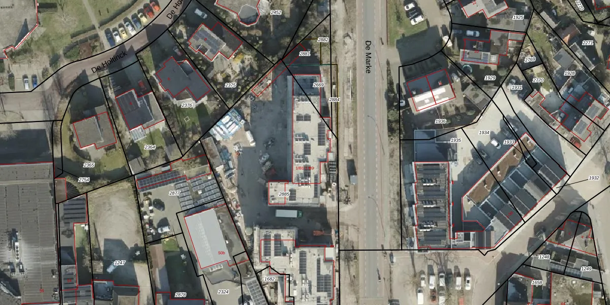 Het perceel waarop De Marke 1-B14 staat heeft een oppervlakte van 2564 m². Dit is een zeer groot perceel. De perceeloppervlakte wordt geregistreerd door het Kadaster. Gedetailleerde informatie over de maten van dit perceel kunt u vinden in het rapport Kadastrale kaart met maatvoering van De Marke 1-B14.