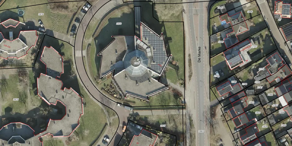 Het perceel waarop De Marke 9 staat heeft een oppervlakte van 1630 m². Dit is een zeer groot perceel. De perceeloppervlakte wordt geregistreerd door het Kadaster. Gedetailleerde informatie over de maten van dit perceel kunt u vinden in het rapport Kadastrale kaart met maatvoering van De Marke 9.