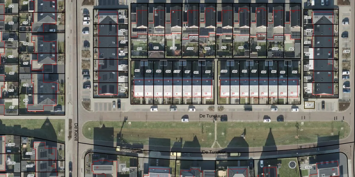 Het perceel waarop De Tureluur 9 staat heeft een oppervlakte van 132 m². Dit is een middelgroot perceel. De perceeloppervlakte wordt geregistreerd door het Kadaster. Gedetailleerde informatie over de maten van dit perceel kunt u vinden in het rapport Kadastrale kaart met maatvoering van De Tureluur 9.