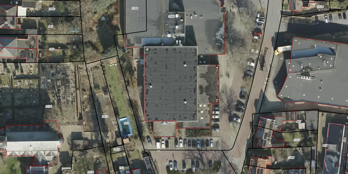 Het perceel waarop Dikkensweg 1 staat heeft een oppervlakte van 8510 m². Dit is een zeer groot perceel. De perceeloppervlakte wordt geregistreerd door het Kadaster. Gedetailleerde informatie over de maten van dit perceel kunt u vinden in het rapport Kadastrale kaart met maatvoering van Dikkensweg 1.