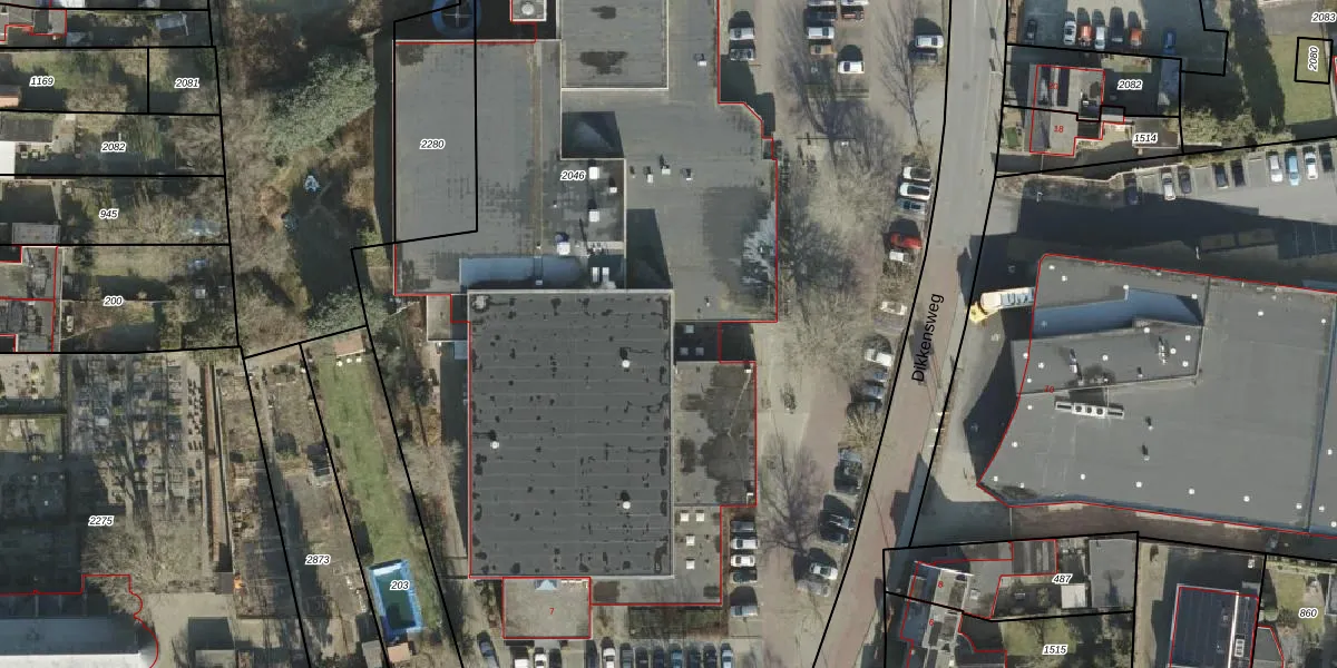 Het perceel waarop Dikkensweg 1-a staat heeft een oppervlakte van 8510 m². Dit is een zeer groot perceel. De perceeloppervlakte wordt geregistreerd door het Kadaster. Gedetailleerde informatie over de maten van dit perceel kunt u vinden in het rapport Kadastrale kaart met maatvoering van Dikkensweg 1-a.