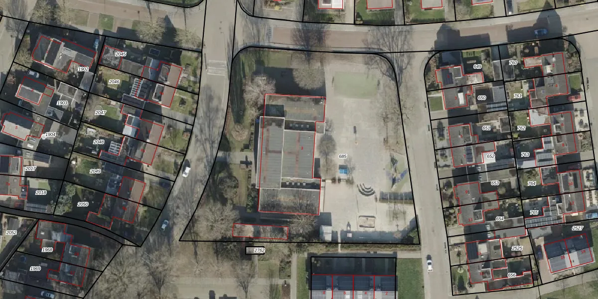 Gebruik de zoekbalk of klik op een perceel voor informatie over de adressen binnen dit perceel.