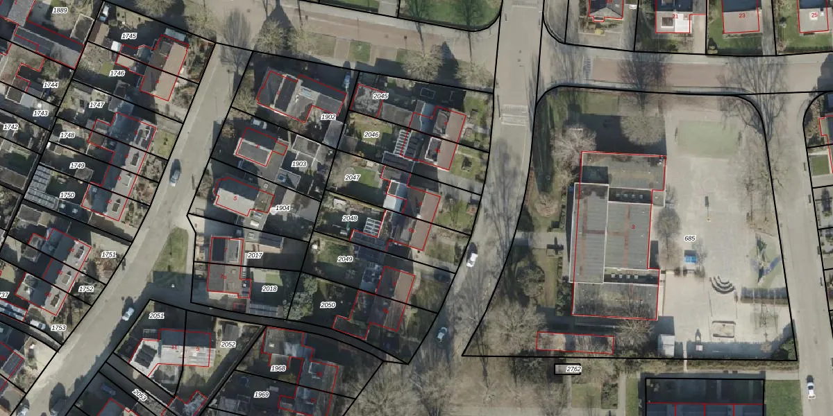 Het adres is gelegen op perceel 2047 in de sectie B en de kadastrale gemeente Wierden. De kadastrale aanduiding is aldus WDN02-B-2047. De gemiddelde perceelgrootte in Wierden is 5350,78 m². Dit perceel is kleiner: de perceeloppervlakte bedraagt 370 m². Het kleinste perceel in de kadastrale gemeente is 0 m² groot. De grootste perceeloppervlakte is 1,19 km². Dit is het enige adres dat aanwezig is op het perceel. De huidige grenzen van het perceel zijn digitaal in de Basisregistratie Kadaster (BRK) geregistreerd op 18-12-2007.