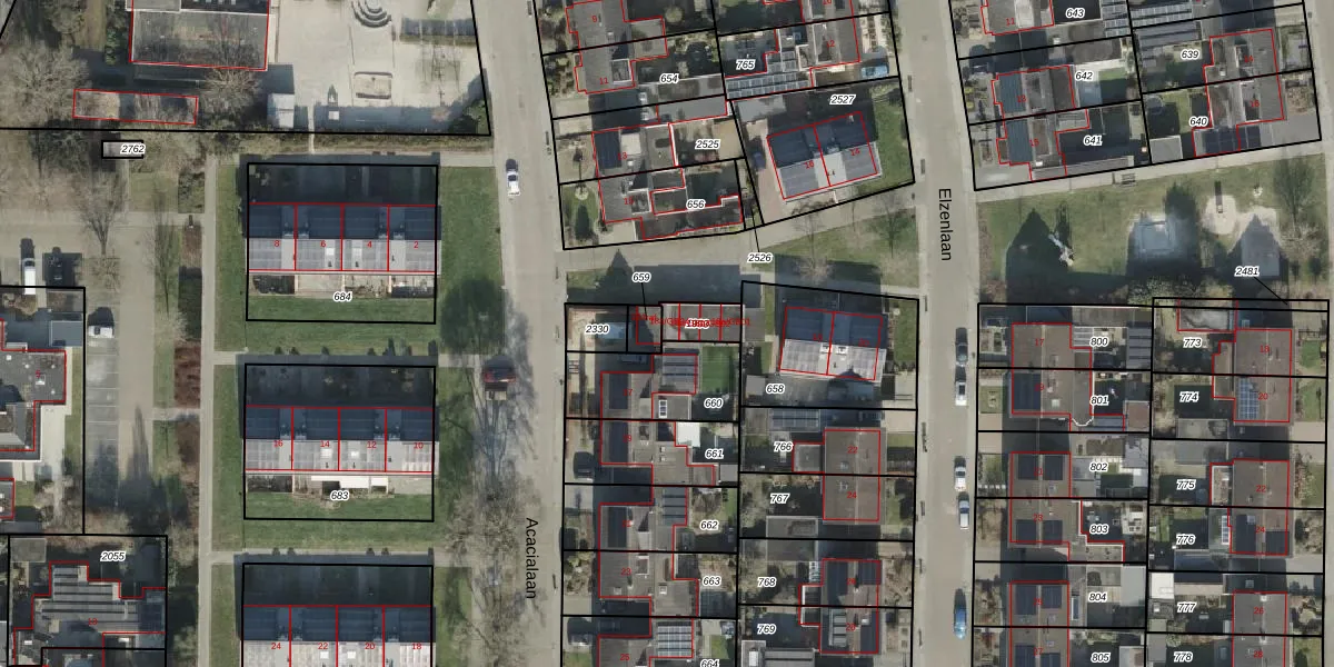 Het perceel waarop Elzenlaan 18-a-GB04 staat heeft een oppervlakte van 66 m². Dit is een klein perceel. De perceeloppervlakte wordt geregistreerd door het Kadaster. Gedetailleerde informatie over de maten van dit perceel kunt u vinden in het rapport Kadastrale kaart met maatvoering van Elzenlaan 18-a-GB04.