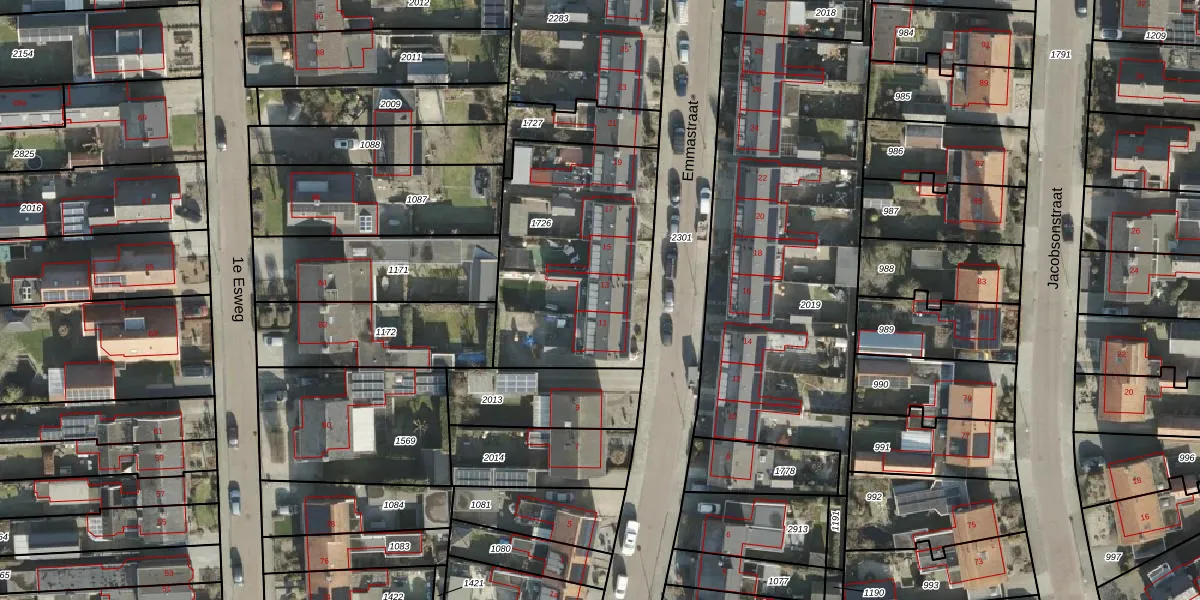 Het perceel waarop Emmastraat 13 staat heeft een oppervlakte van 954 m². Dit is een groot perceel. De perceeloppervlakte wordt geregistreerd door het Kadaster. Gedetailleerde informatie over de maten van dit perceel kunt u vinden in het rapport Kadastrale kaart met maatvoering van Emmastraat 13.