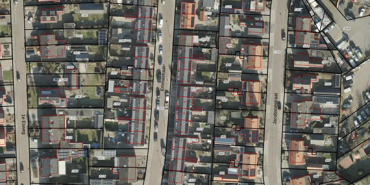 Het perceel waarop Emmastraat 22 staat heeft een oppervlakte van 1720 m². Dit is een zeer groot perceel. De perceeloppervlakte wordt geregistreerd door het Kadaster. Gedetailleerde informatie over de maten van dit perceel kunt u vinden in het rapport Kadastrale kaart met maatvoering van Emmastraat 22.