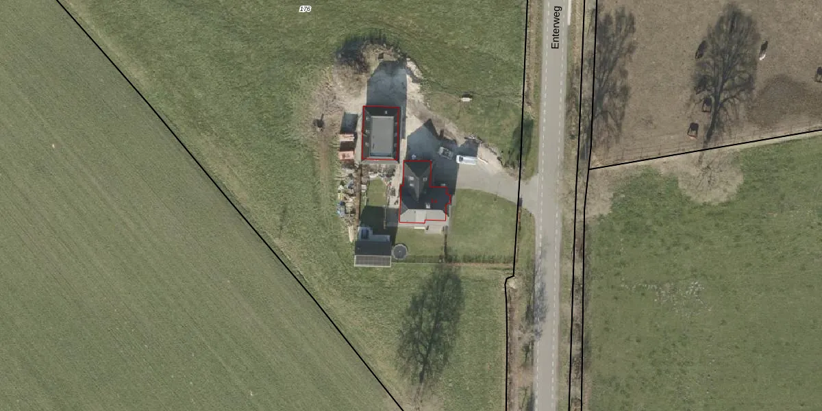 Enterweg 14 is gelegen op kadastraal perceel WDN02W176. Deze kadastrale aanduiding is uniek en wordt gebruikt door het Kadaster om eigendomsrechten en andere zakelijke rechten vast te leggen. Het perceel maakt onderdeel uit van de kadastrale gemeente Wierden.
