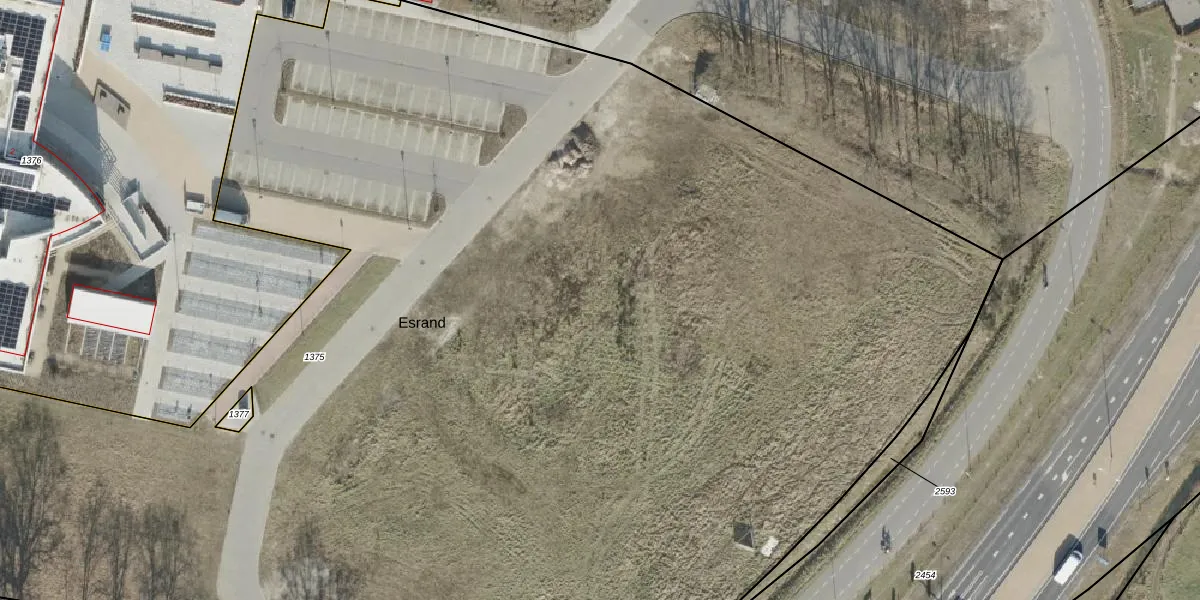 Het perceel waarop Esrand 1 staat heeft een oppervlakte van 1,7 ha. Dit is een zeer groot perceel. De perceeloppervlakte wordt geregistreerd door het Kadaster. Gedetailleerde informatie over de maten van dit perceel kunt u vinden in het rapport Kadastrale kaart met maatvoering van Esrand 1.