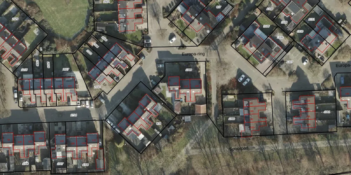 Het perceel waarop Europa-ring 122 staat heeft een oppervlakte van 739 m². Dit is een groot perceel. De perceeloppervlakte wordt geregistreerd door het Kadaster. Gedetailleerde informatie over de maten van dit perceel kunt u vinden in het rapport Kadastrale kaart met maatvoering van Europa-ring 122.