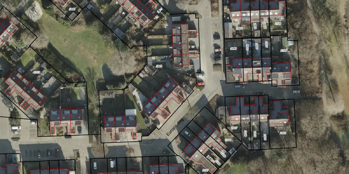 Het perceel waarop Europa-ring 165 staat heeft een oppervlakte van 4035 m². Dit is een zeer groot perceel. De perceeloppervlakte wordt geregistreerd door het Kadaster. Gedetailleerde informatie over de maten van dit perceel kunt u vinden in het rapport Kadastrale kaart met maatvoering van Europa-ring 165.