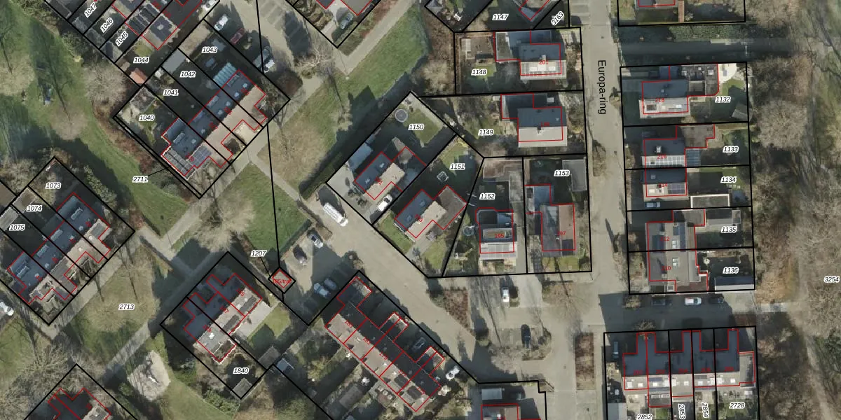 Het perceel waarop Europa-ring 193 staat heeft een oppervlakte van 449 m². Dit is een groot perceel. De perceeloppervlakte wordt geregistreerd door het Kadaster. Gedetailleerde informatie over de maten van dit perceel kunt u vinden in het rapport Kadastrale kaart met maatvoering van Europa-ring 193.
