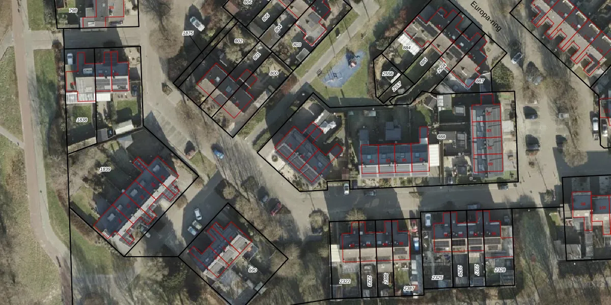 Het perceel waarop Europa-ring 77 staat heeft een oppervlakte van 2217 m². Dit is een zeer groot perceel. De perceeloppervlakte wordt geregistreerd door het Kadaster. Gedetailleerde informatie over de maten van dit perceel kunt u vinden in het rapport Kadastrale kaart met maatvoering van Europa-ring 77.