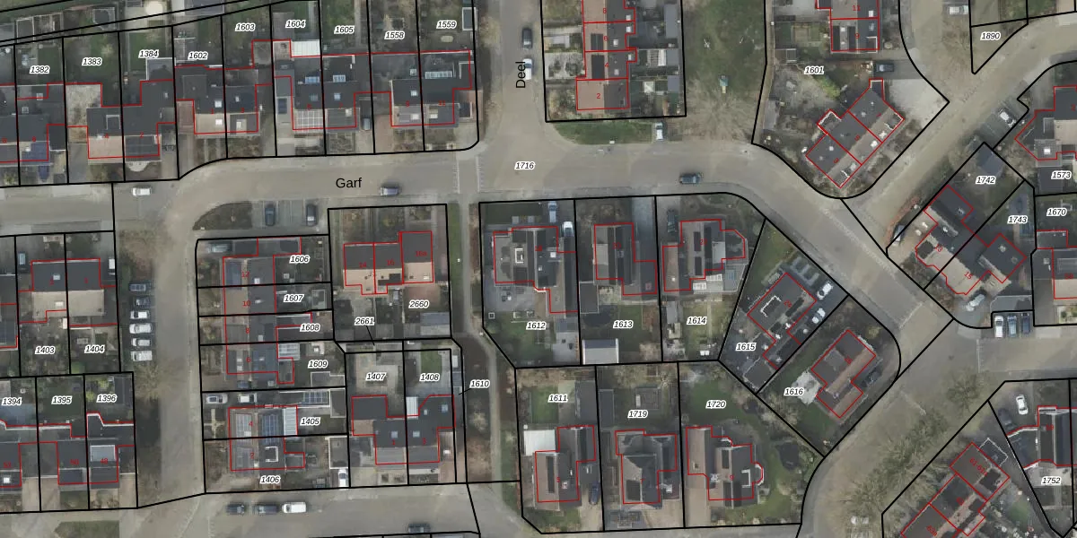 Het perceel waarop Garf 18 staat heeft een oppervlakte van 529 m². Dit is een groot perceel. De perceeloppervlakte wordt geregistreerd door het Kadaster. Gedetailleerde informatie over de maten van dit perceel kunt u vinden in het rapport Kadastrale kaart met maatvoering van Garf 18.