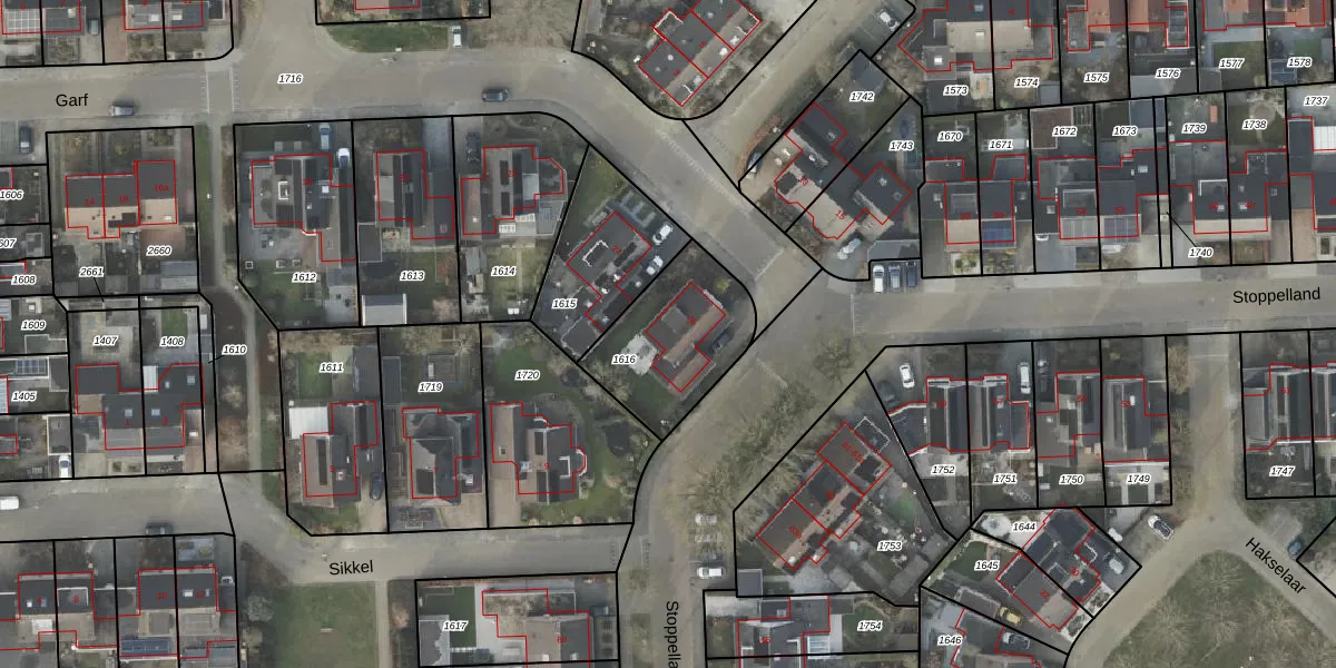 Het perceel waarop Garf 26 staat heeft een oppervlakte van 429 m². Dit is een groot perceel. De perceeloppervlakte wordt geregistreerd door het Kadaster. Gedetailleerde informatie over de maten van dit perceel kunt u vinden in het rapport Kadastrale kaart met maatvoering van Garf 26.