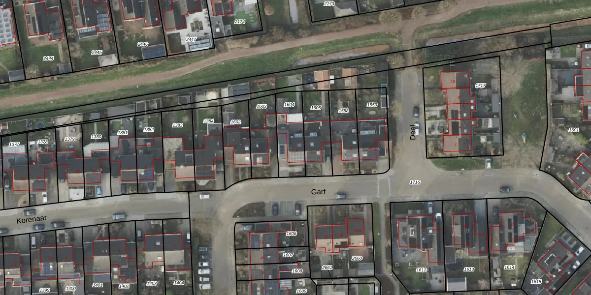 Het perceel waarop Garf 5 staat heeft een oppervlakte van 262 m². Dit is een middelgroot perceel. De perceeloppervlakte wordt geregistreerd door het Kadaster. Gedetailleerde informatie over de maten van dit perceel kunt u vinden in het rapport Kadastrale kaart met maatvoering van Garf 5.