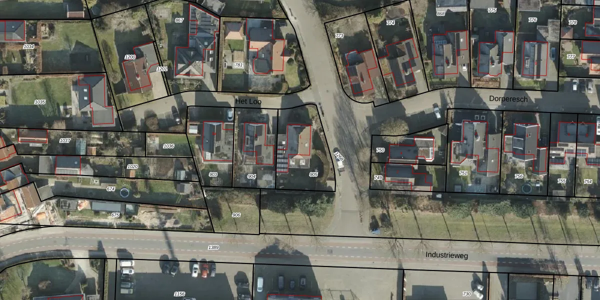 Het perceel waarop Het Loo 1 staat heeft een oppervlakte van 476 m². Dit is een groot perceel. De perceeloppervlakte wordt geregistreerd door het Kadaster. Gedetailleerde informatie over de maten van dit perceel kunt u vinden in het rapport Kadastrale kaart met maatvoering van Het Loo 1.